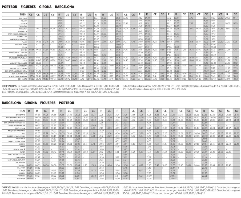 Horaris del tren publicats al setmanari Hora Nova en 25 de gener de 2008