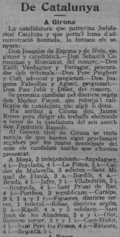 Notícia publicada al “Diario de Gerona de avisos y noticias” en data 2 de maig de 1915