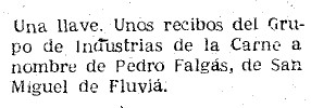 Notícia publicada al diari Los Sitios de Gerona en data 17 de desembre de 1956