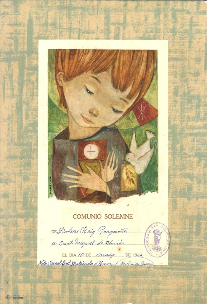 Recordatori de la primera comunió solemne de Ma Dolors Reig i Garganta