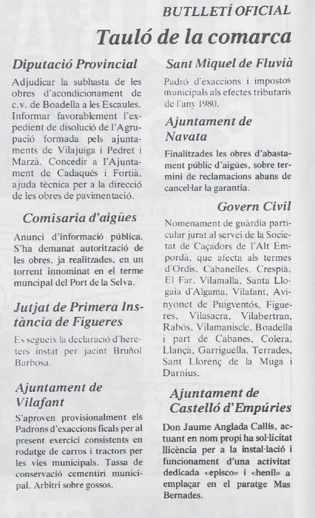 Notícia publicada al diari Los Sitios de Gerona en data 12 d’octubre de 1980