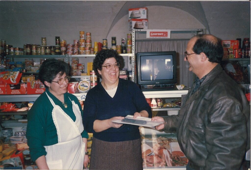 Fotografia feta a la guanyadora d’un concurs de Gourmet, Manela Navarro (al mig de la fotografia), acompanyada de la Montserrat Blanch de Queviures Can Nofre i del representant de l’empresa.