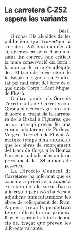 Notícia publicada al Diari de Girona en data 1r d’octubre de 1992