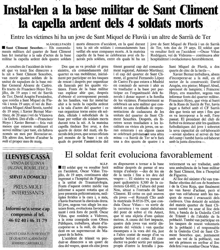 Notícia publicada al diari El Punt en data 10 de gener de 1997