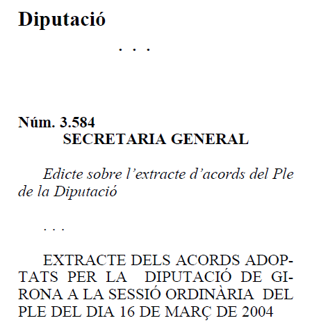 Notícia publicada al BOP (Butlletí Oficial de la Província) en data 14 d’abril de 2004.