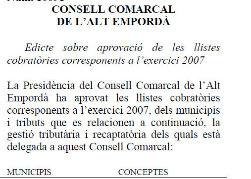 Edicte publicat al Butlletí Oficial de la Província de Girona en data 8 d’agost de 2007.