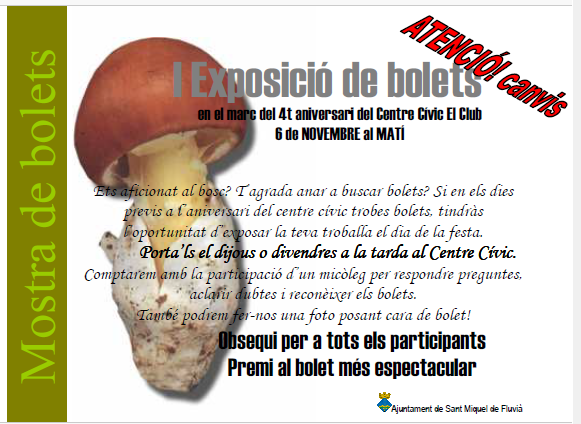 Cartell de la Mostra de Bolets el 6 de novembre de 2010, dins dels actes del 4t aniversari de Centre Cívic.