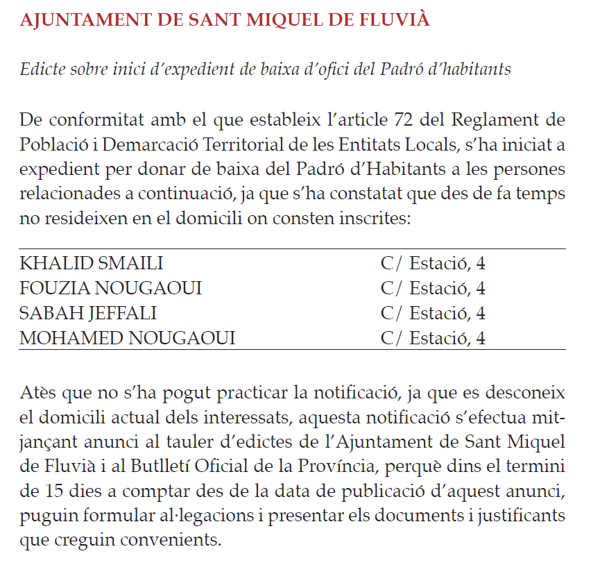 Edicte publicat al BOP (Butlletí Oficial de la Província) en data 10 d’octubre de 2013.