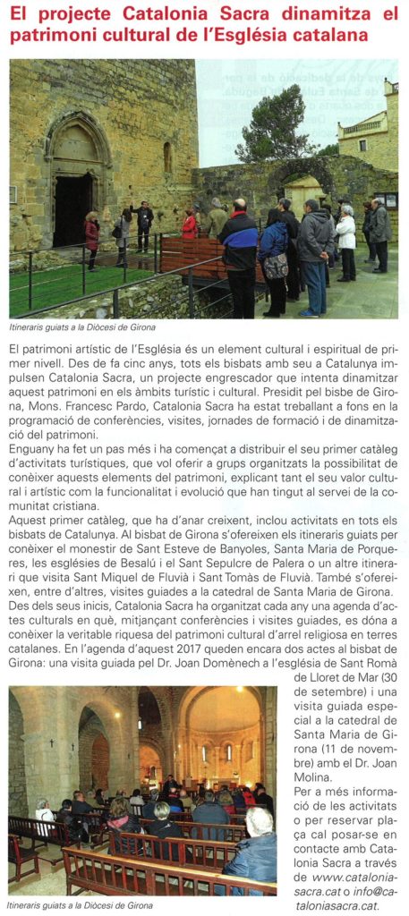 Notícia publicada al full parroquial de Girona en data 23 de juliol de 2017.
