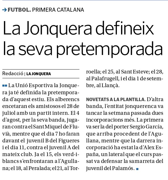 Notícia publicada al setmanari Hora Nova en data 16 de juliol de 2019