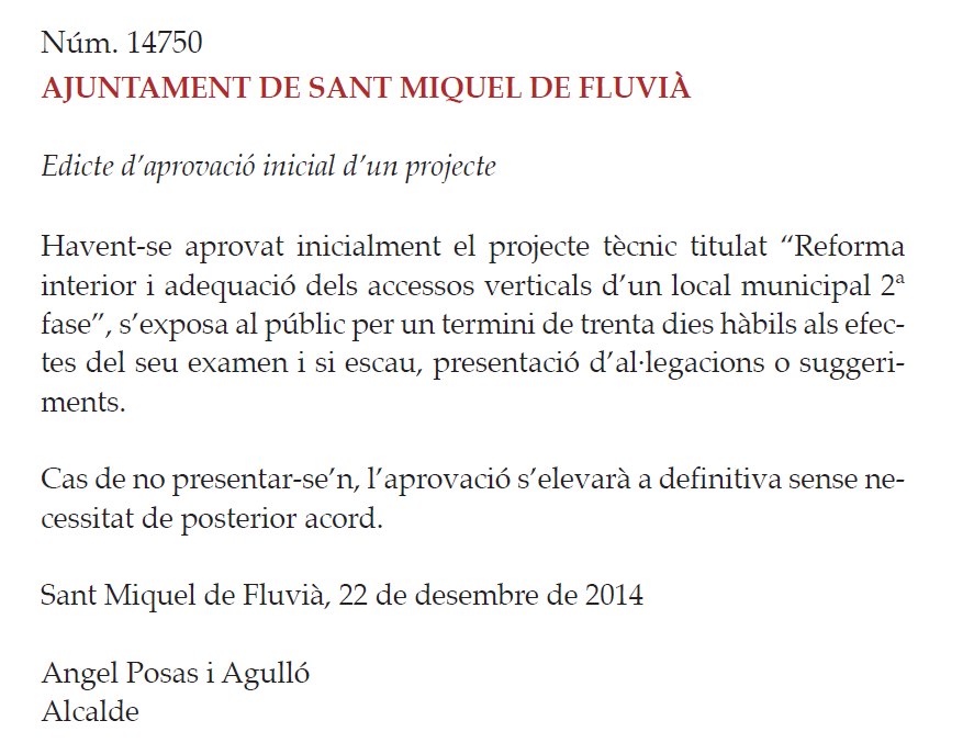 Edicte de l’ajuntament de Sant Miquel de Fluvià, publicat al B.O.P. de Girona en data 15 de març de 2016