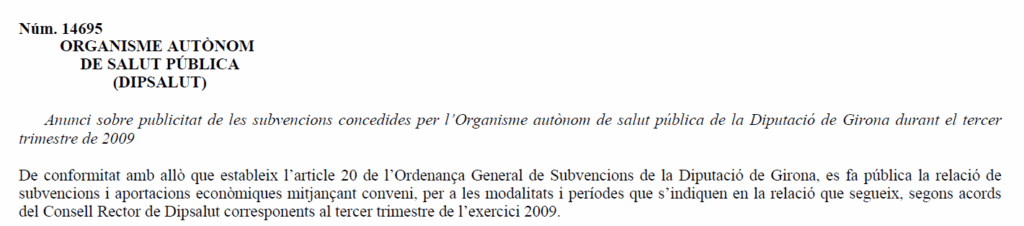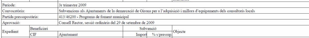 Notícia publicada al BOP (Butlletí Oficial de la Província) en data 9 d’octubre de 2009.