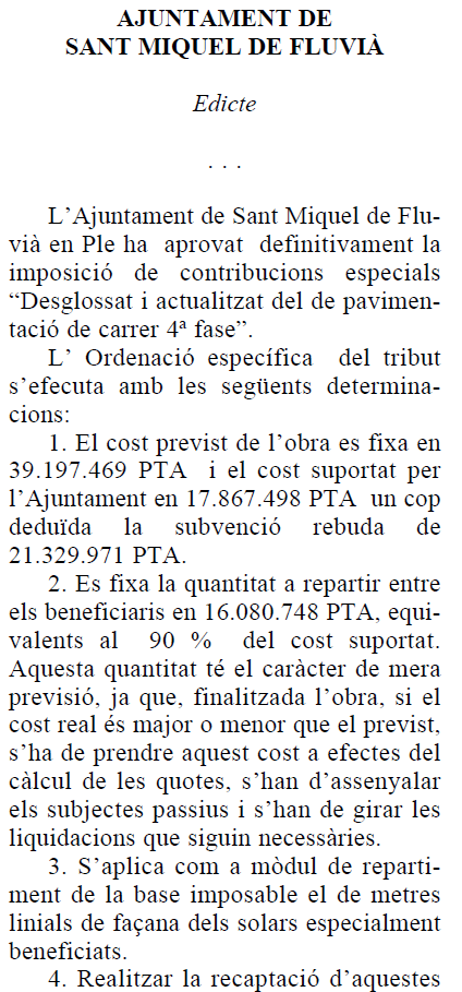 Edicte de l’ajuntament publicat al BOP (Butlletí Oficial de la Província) en data 11 de desembre de 2001.