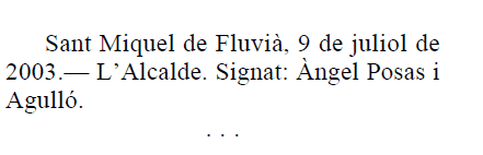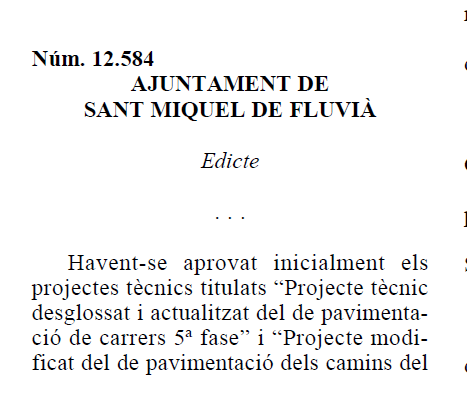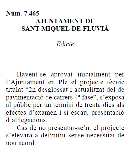 Edicte publicat al Butlletí Oficial de la Província de Girona en data 10 de desembre de 2003.