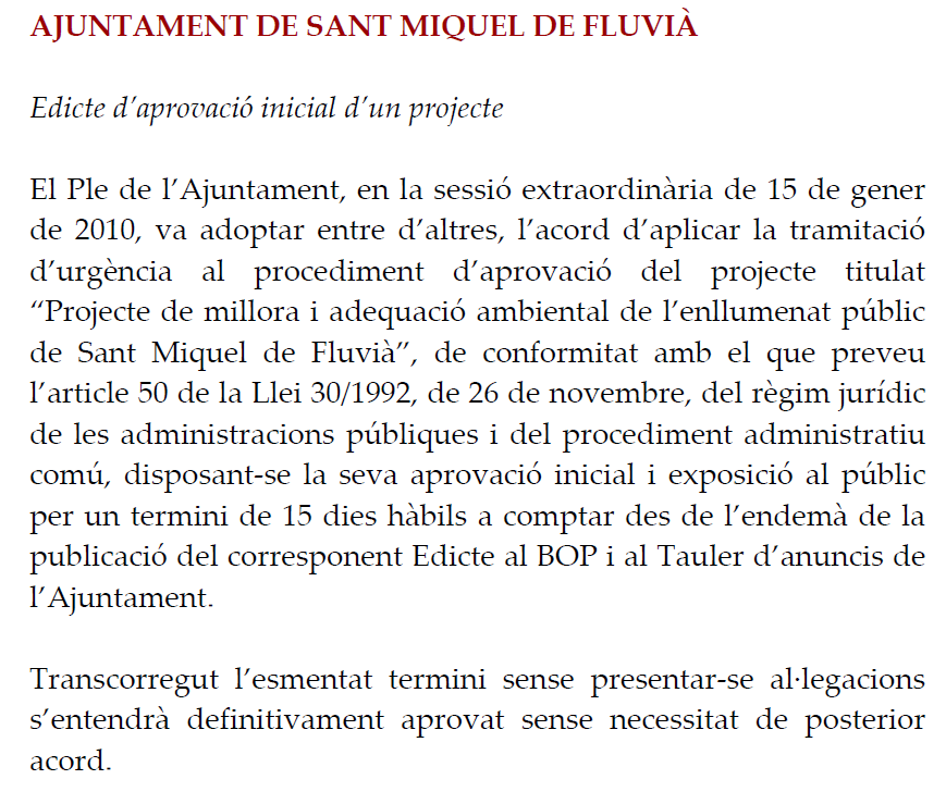 Edicte publicat al Butlletí Oficial de la Província de Girona en data 9 de febrer de 2010.