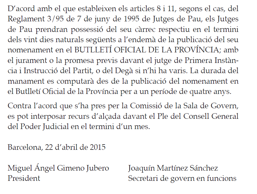 Notícia publicada al BOP (Butlletí Oficial de la Província) en data 6 de maig de 2015.