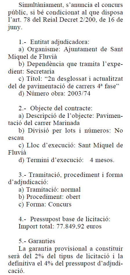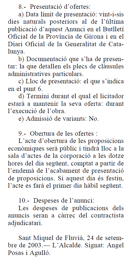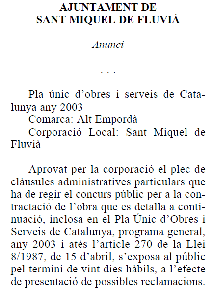 Edicte publicat al BOP (Butlletí Oficial de la Província) en data 7 d’octubre de 2003.