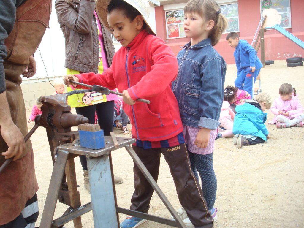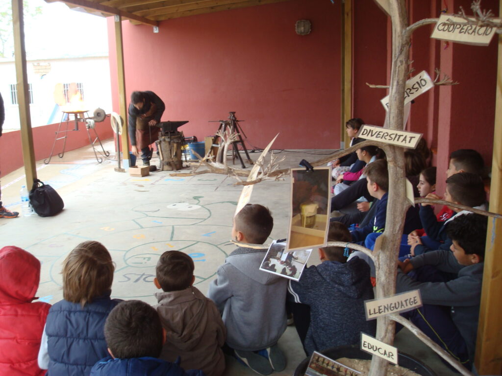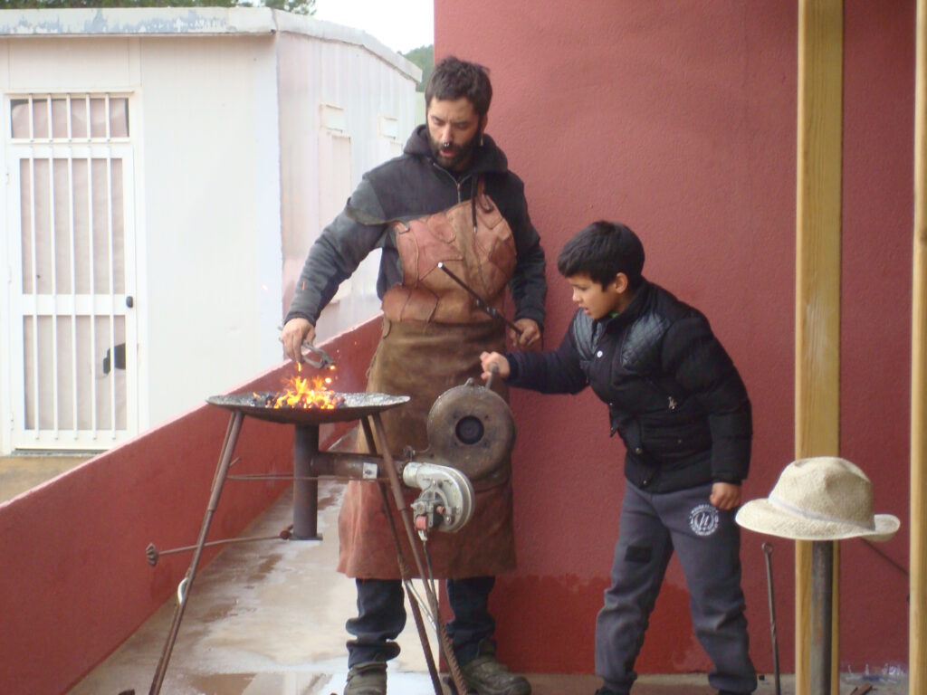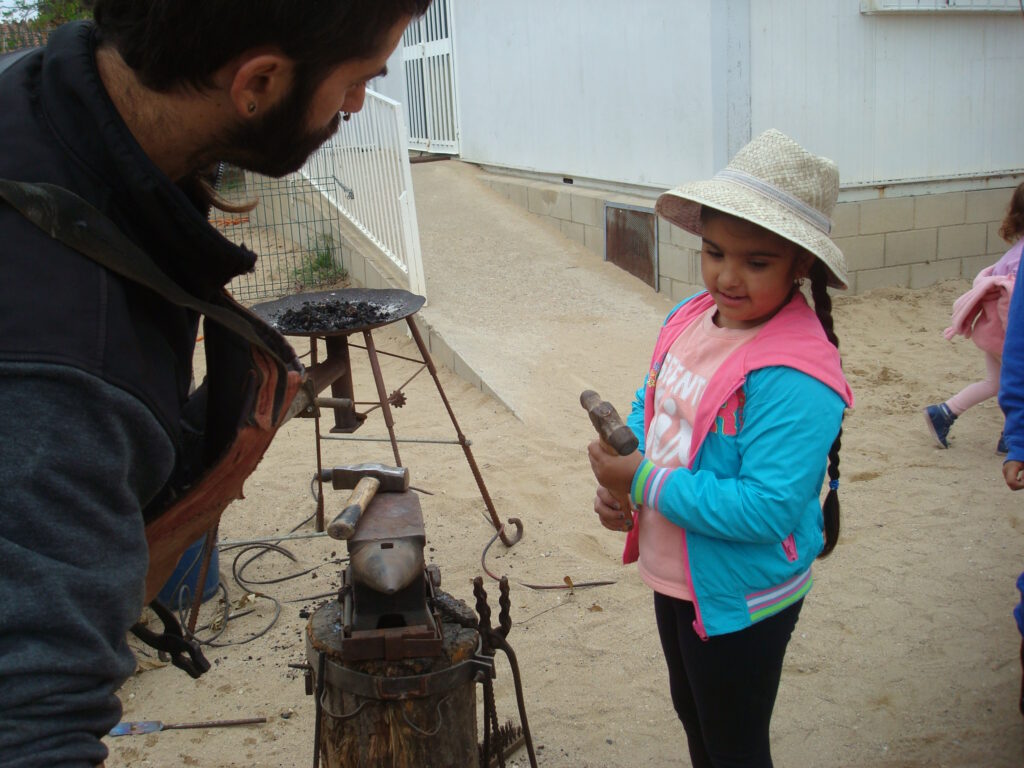 Fotografia feta a l’escola Vallgarriga del taller de forja per preparar la 8a fira dels oficis del mes de maig de 2016.