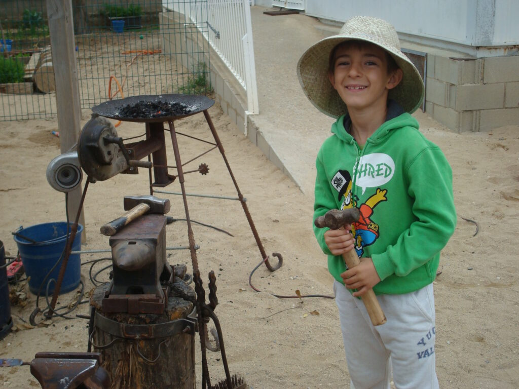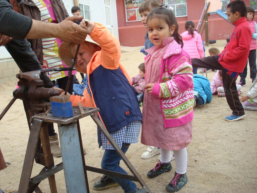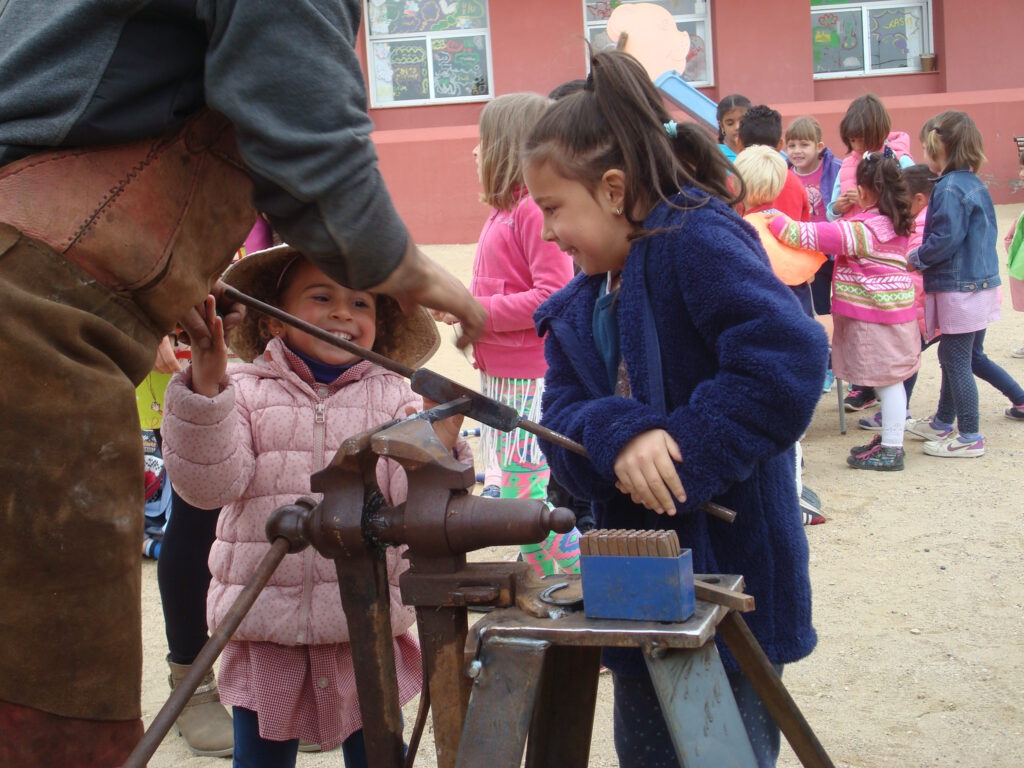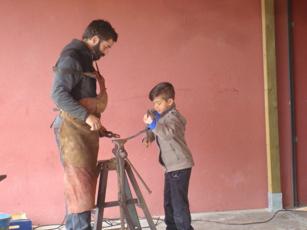 Fotografia feta a l’escola Vallgarriga del taller de forja per preparar la 8a fira dels oficis del mes de maig de 2016.