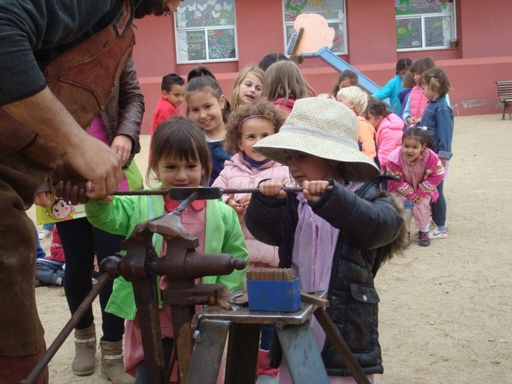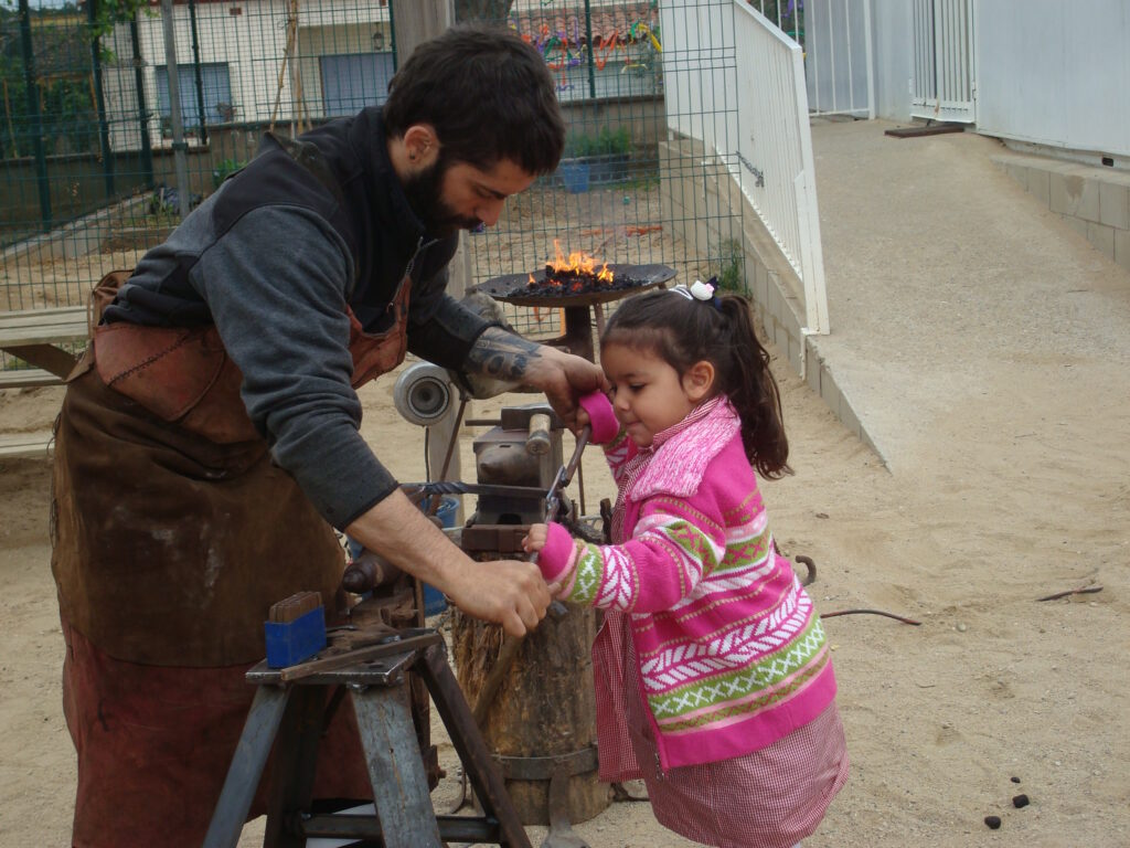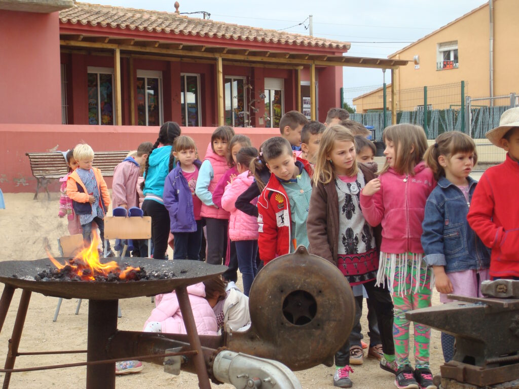 Fotografia feta a l’escola Vallgarriga del taller de forja per preparar la 8a fira dels oficis del mes de maig de 2016.