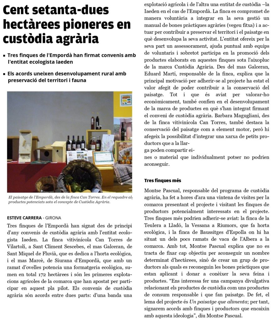 Notícia publicada al diari El Punt Avui en data 4 d’octubre de 2015.