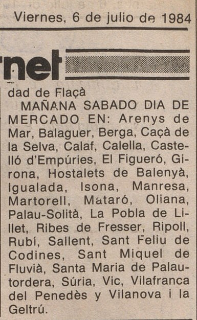 Notícia publicada al diari El Noticiero Universal en data 6 de juliol 1984.