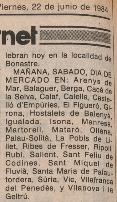 Notícia publicada al diari El Noticiero Universal en data 13 de juliol de 1984.