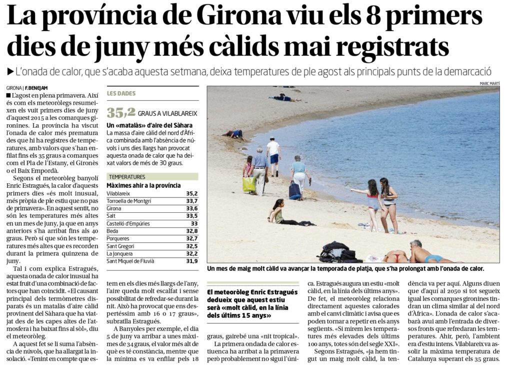 Notícia publicada al Diari de Girona en data 8 de juny de 2015
