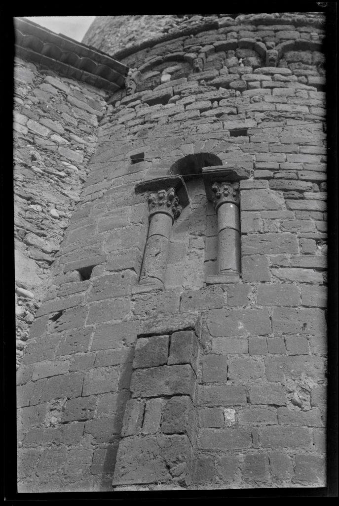 Fotografia de l’absis del monestir de Sant Miquel de Fluvià feta el 19 de març de 1966