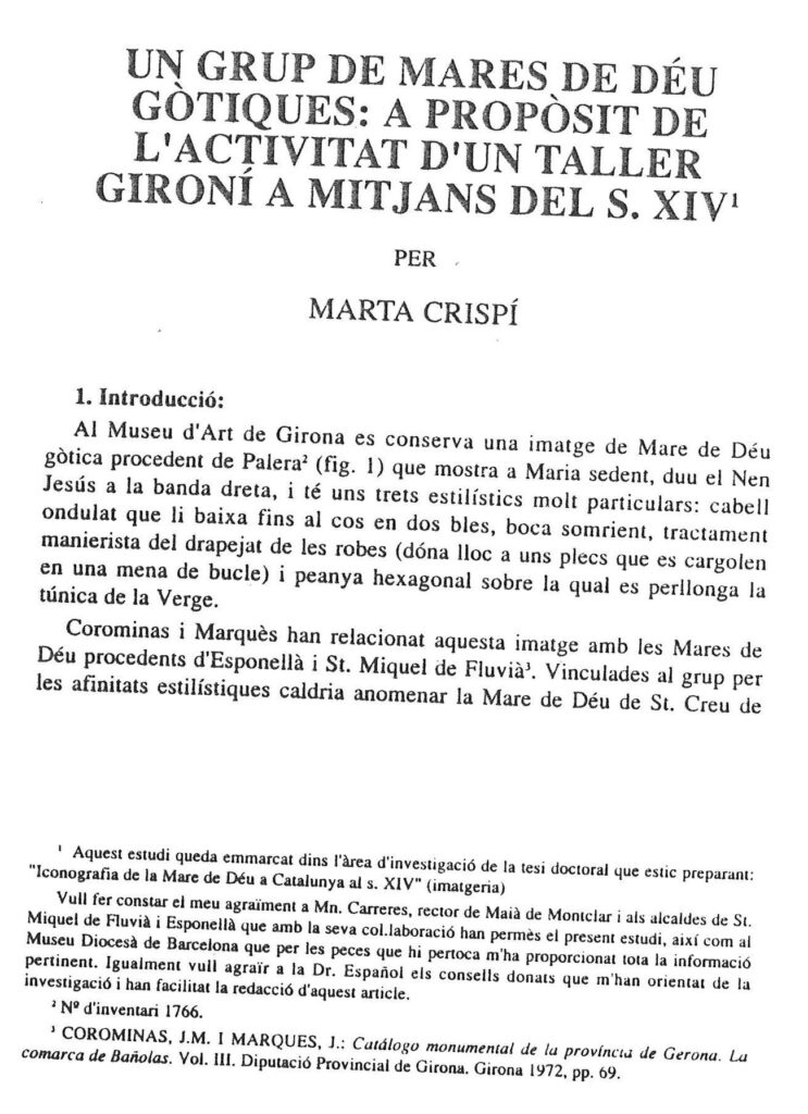 Notícia publicada als Annals de l’Institut d’Estudis Gironins, fet per Marta Crispí i publicat el 1992-1993.