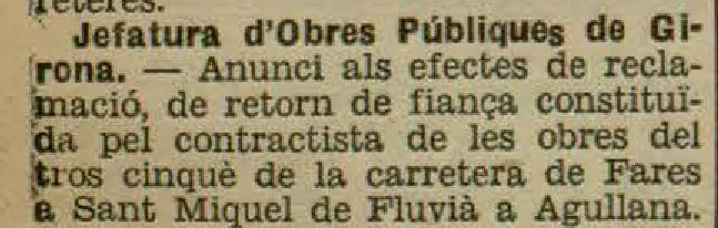 Notícia publicada al Diari de Girona d’avisos i notícies en data 20 de gener de 1932