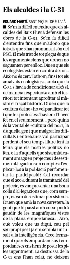 Escrit publicat al Diari de Girona en data 9 d’octubre de 2009
