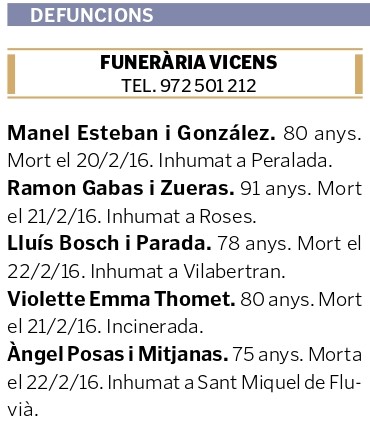 Notícia publicada al B.O.P. de Girona en data 14 de març de 2016